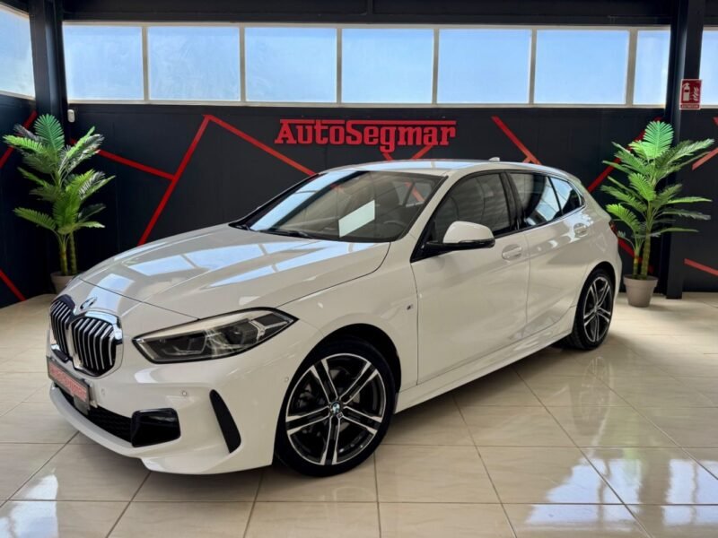 Este BMW Serie 1 118d destaca por su completo equipamiento deportivo M Sport, que incluye asientos deportivos M, volante M de cuero y paquete aerodinámico M con spoiler trasero. Su interior combina elegancia y deportividad con tapicería de cuero Dakota, molduras iluminadas y techo antracita BMW Individual.